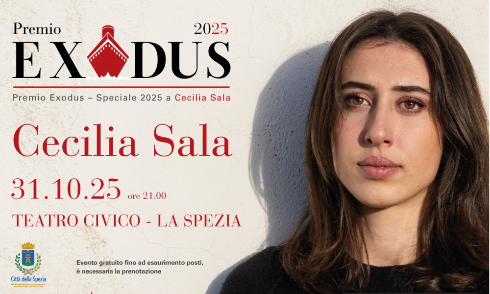 Cecilia Sala, in dialogo con la giornalista Annalena Benini, presenta venerdì 31 ottobre alle ore 21.00 presso il Teatro Civico della Spezia il suo ultimo libro “I figli dell’odio” (Mondadori, 2025). Un evento speciale nel corso del quale il Sindaco della Spezia Pierluigi Peracchini conferirà a Cecilia Sala il Premio Exodus Speciale 2025.